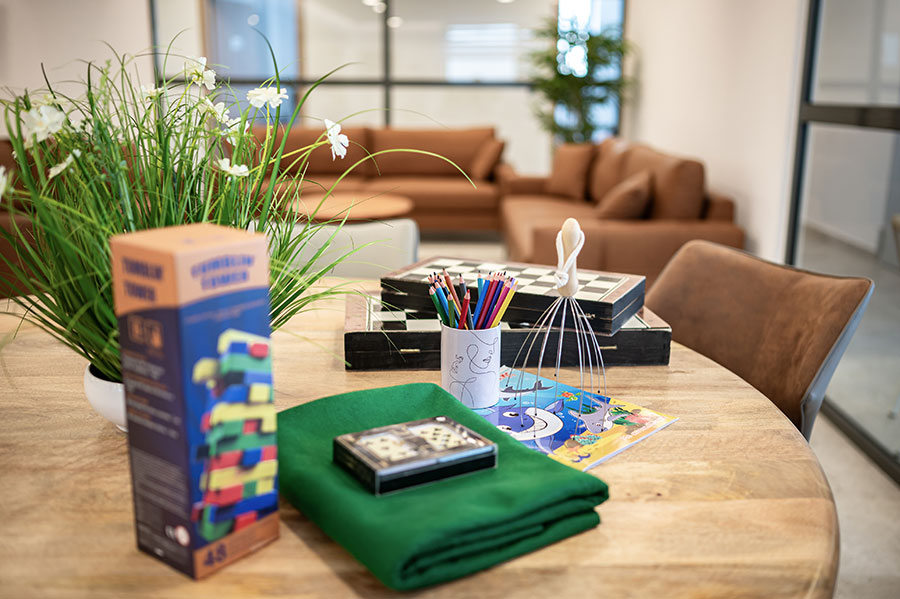 Οι ένοικοι του κέντρου μας απασχολούνται τόσο με καλλιτεχνικές δραστηριότητες όσο και με ασκήσεις νοητικής ενδυνάμωσης, χρησιμοποιώντας επιτραπέζια παιχνίδια, χειροτεχνίες, ζωγραφιές κ.λπ.
